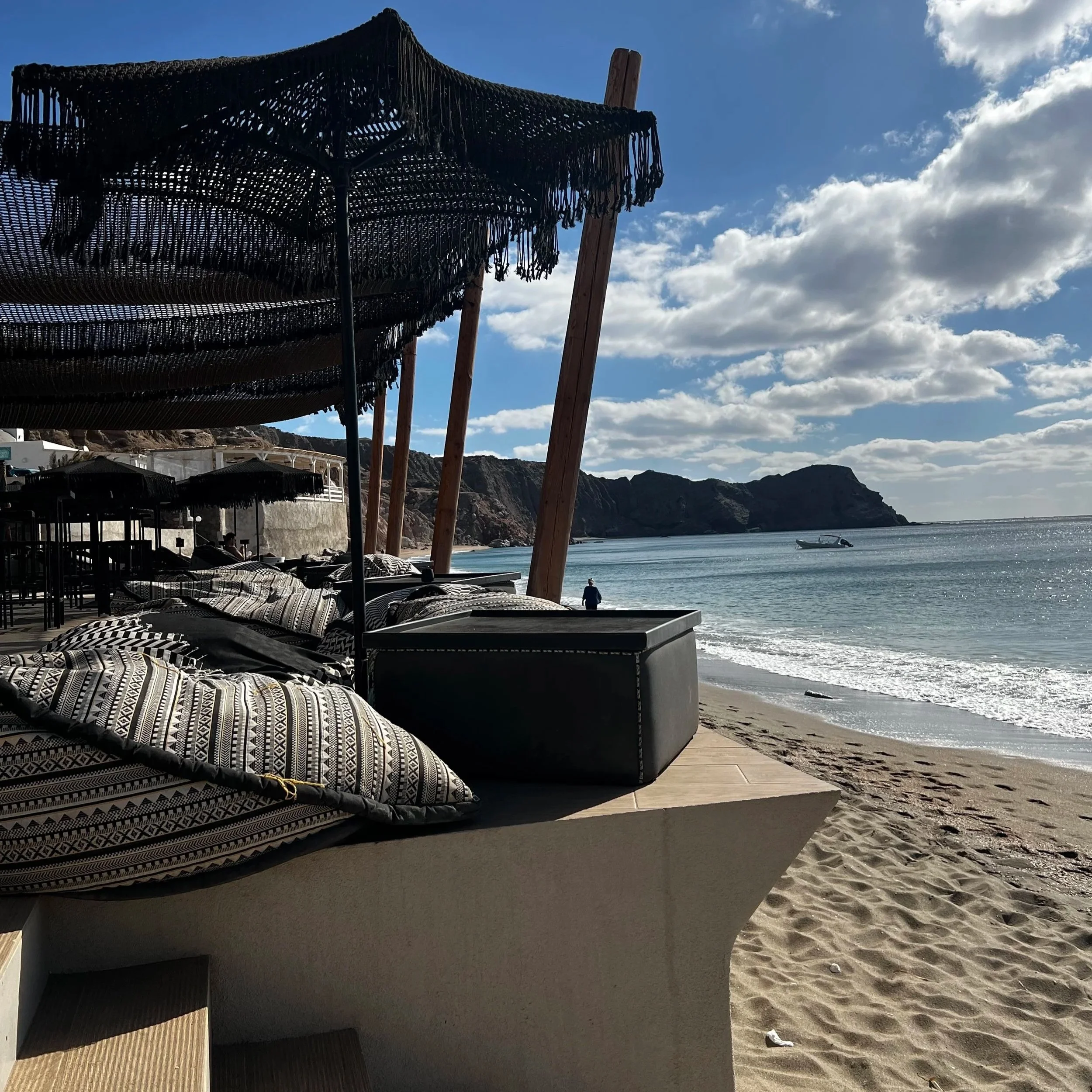 Another beautiful beach with amazing color rock formations, red, white, and yellow pebbles. We visited this beach our last full day in Milos and went to Aqua Loca beach club. The water here is a beautiful blue and a little more waves than Fyriplaka. Plenty of room on this beach as well. I’d highly recommend checking out one of the beach clubs.